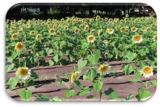 当日は天候にも恵まれ秋晴れの快晴となり、黄色と白色のひまわりが満開で