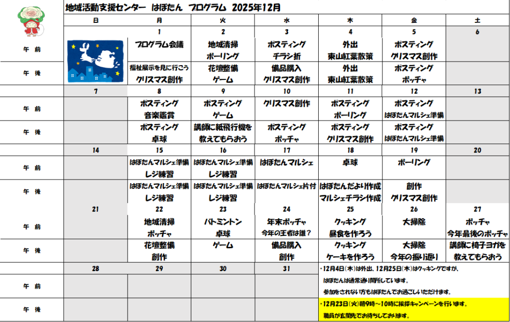 利用者の方が日々楽しそうに過ごされている様子や、毎月のプログラム・行事内容、翌月の行事予定を発信していきます。