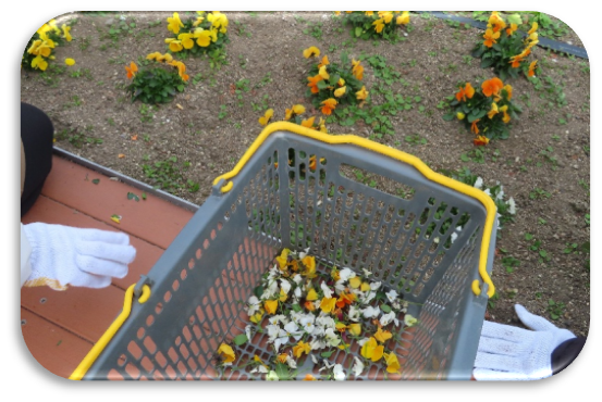 今回はビオラの剪定のお手伝いをしました。連日の寒さで霜により、